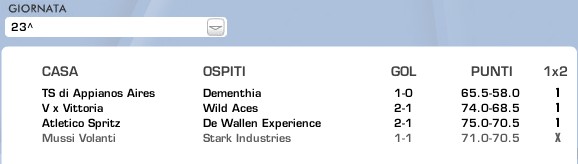 Mussi Volanti vs Wild Aces 1-1 68,5-70 X