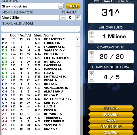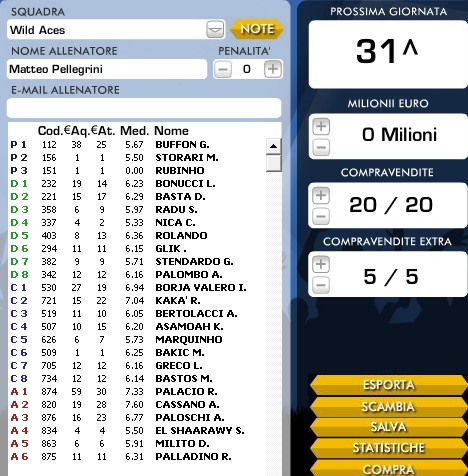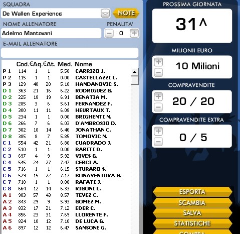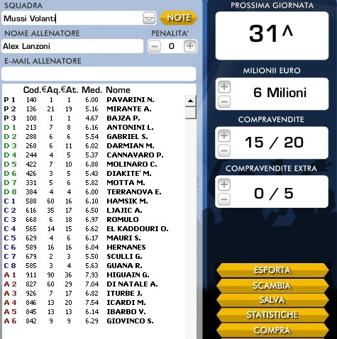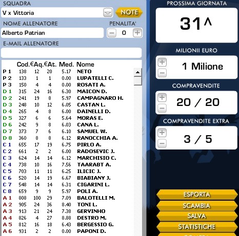 fuori Pinilla 15 dentro Sau 18 = restano 24 milioni 8 cambi